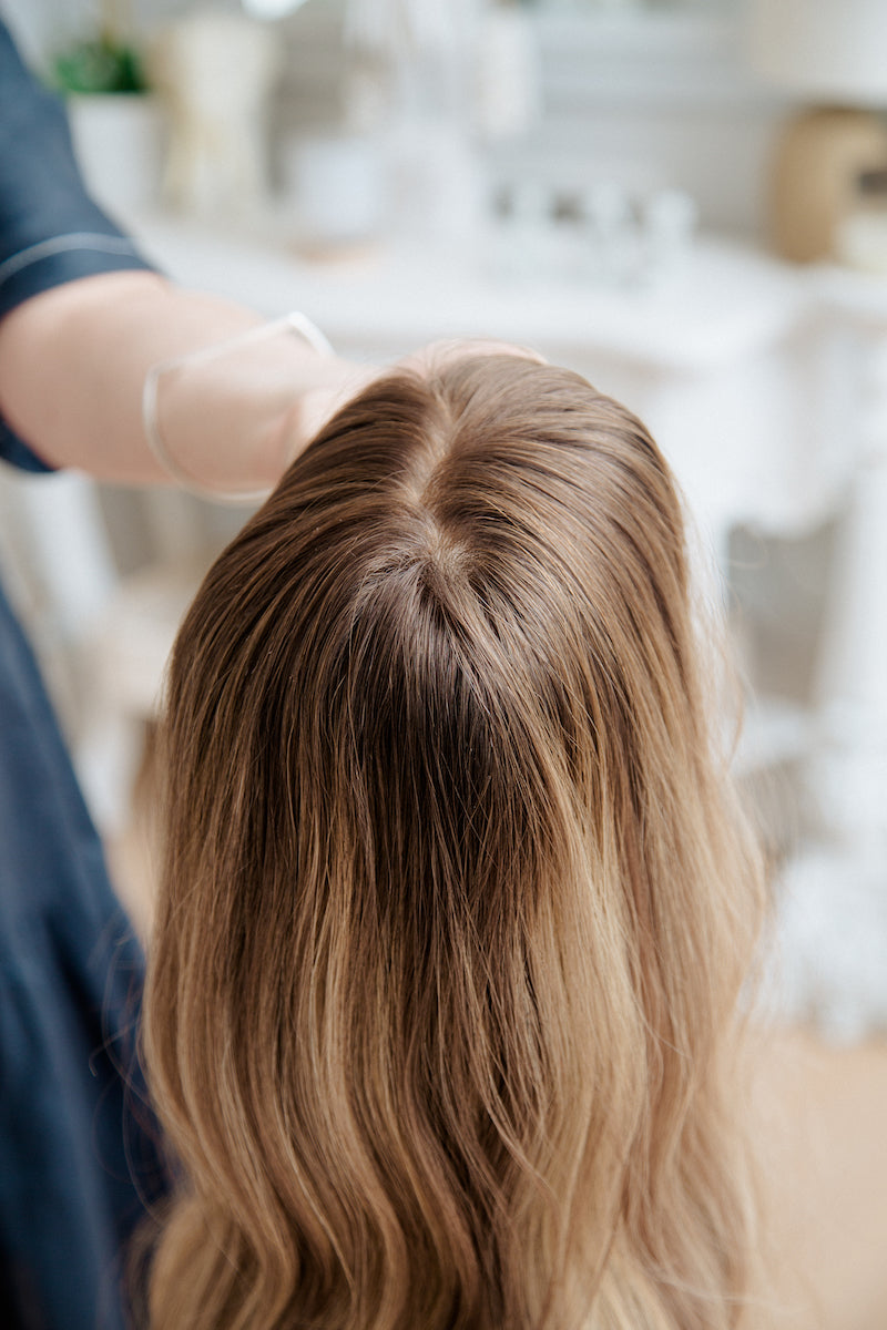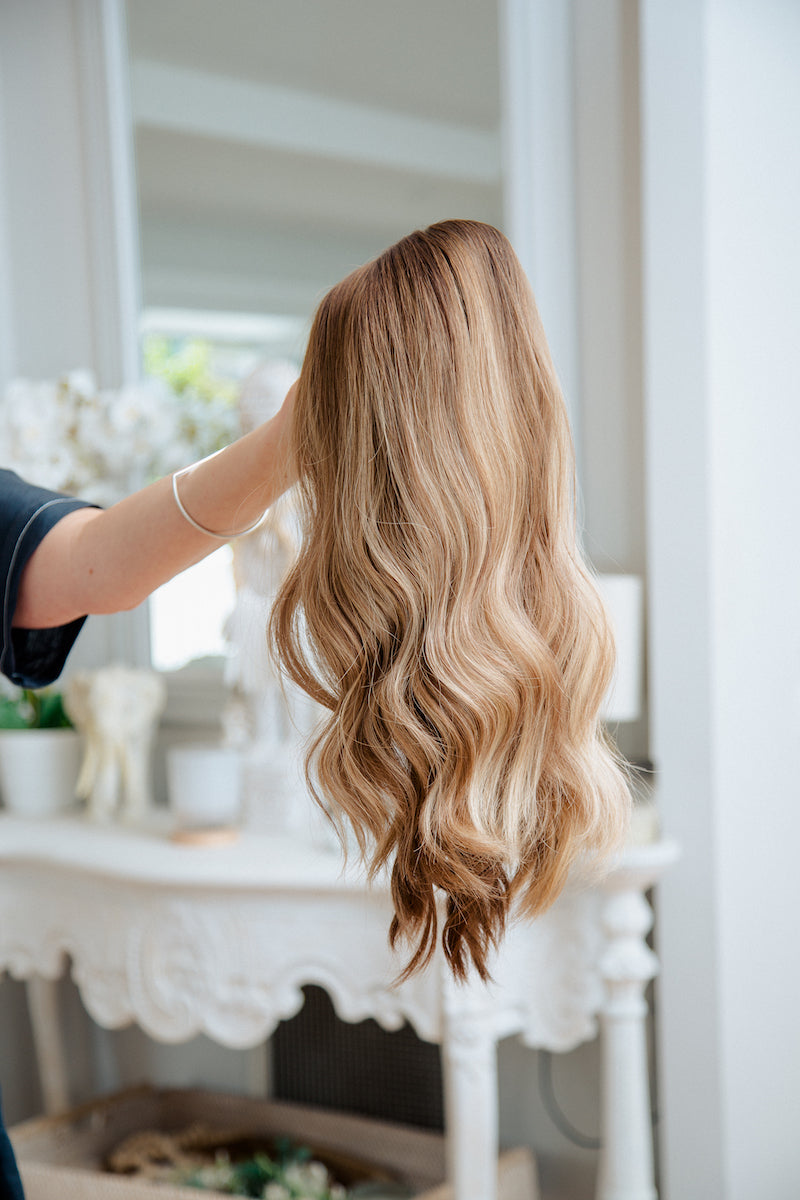 Our Go-To Wig, Annika has a 4 x 4" hand-tied silk top and a closed wefted cap. The benefit of a silk top is that it allows you to part your hair anywhere in this area whilst still mimicking a natural looking scalp. Our Go-To Wigs feature inbuilt adjustable straps allowing you to tighten the wig, ears tabs and have a combination of clips and combs for that added extra security. We also include a Frankie Wig Grip which enhances the wig wearing experience.